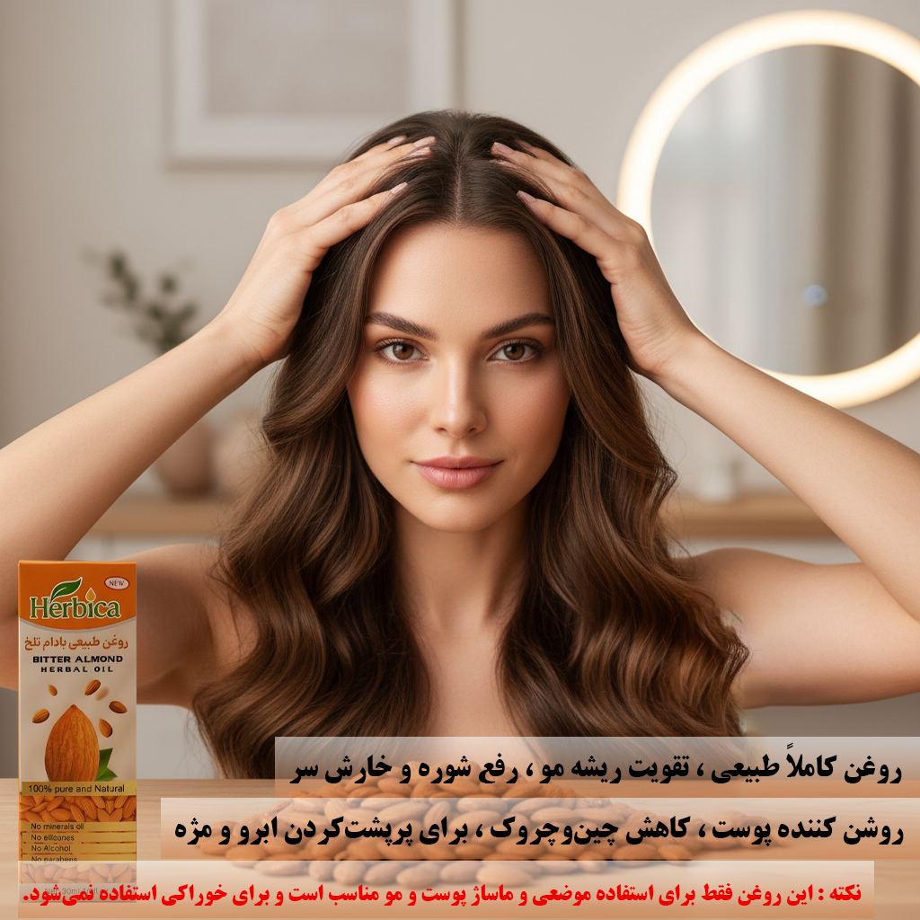 3. **تقویت رشد مو: روغن بادام تلخ به تغذیه و تقویت فولیکول‌های مو کمک می‌کند و می‌تواند باعث بهبود ضخامت و رشد موها شود.